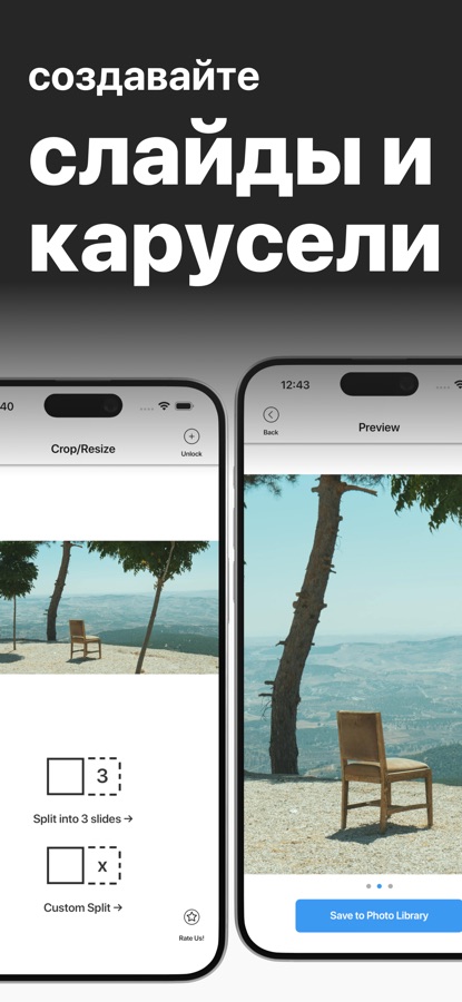 PerfectCrop дает вам возможность быстро и легко обрезать и разделить ваши фотографии ровно пополам. Идеально подходит для загрузки фотографий 4:3 или панорамных фото в Instagram или другие платформы и приложения социальных сетей. Просто выберите изображение, которое вы хотите обрезать, измените размер по своему вкусу и нажмите кнопку разделения. Оттуда вы можете просмотреть свои изображения и сохранить их в фотопленку для дальнейшего использования.