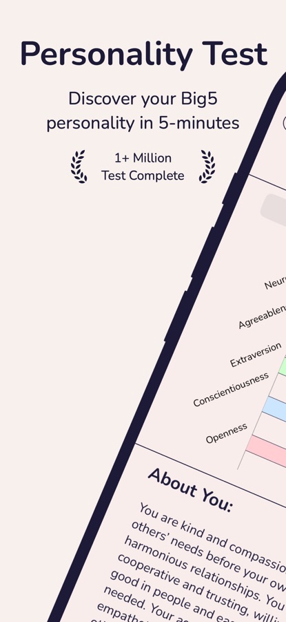 Our app is designed to bring you rapid, accurate insights into your personality. Unlike lengthy personality quizzes, our Big Five personality test is streamlined and precise, taking only five minutes to complete. No complex questions, no time-consuming assessments—just quick, insightful results that help you better understand who you are.