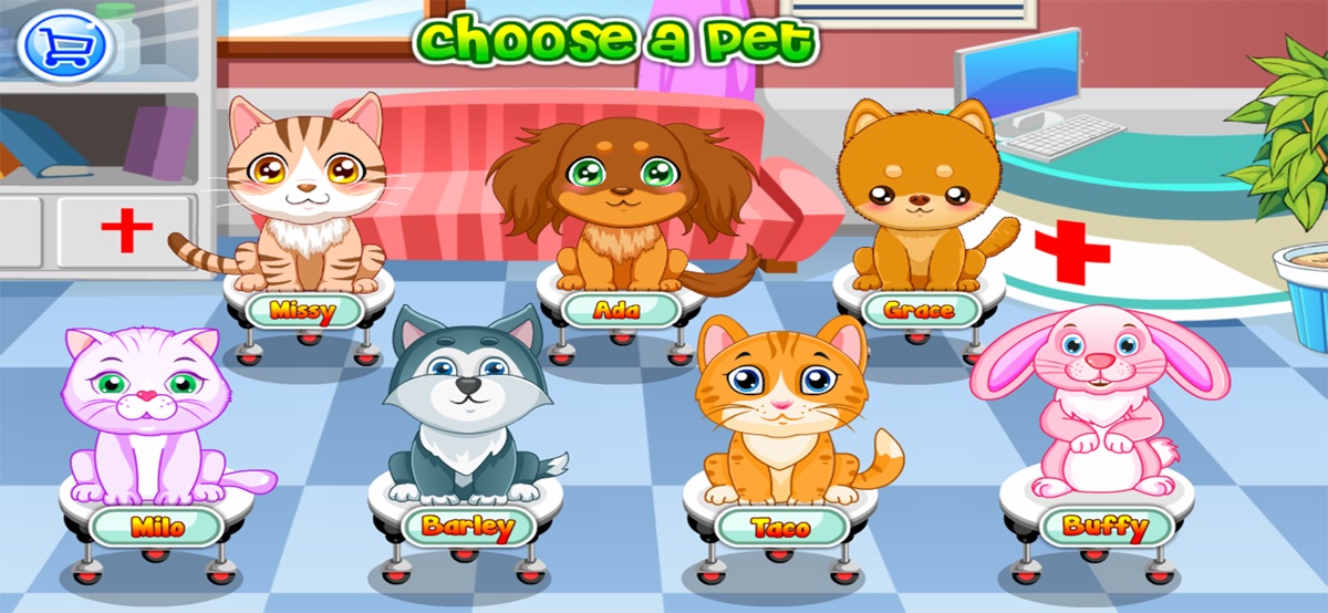 • Выбирайте первого питомца, которого Вы будете лечить.