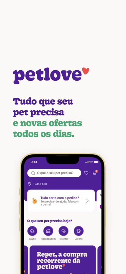 Faça parte do maior ecossistema pet do Brasil! No app da Petlove, você confere as melhores promoções, serviços e todos os produtos que o seu peludo precisa na palma da mão e com entrega rápida! Como não amar?
