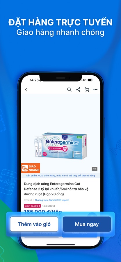 • Đặt hàng tiện lợi, nhận sản phẩm tại nhà hoặc tại nhà thuốc Pharmacity gần nhất trên toàn quốc.
