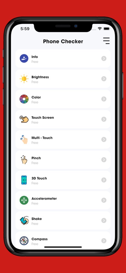 Phone Checker is an application that allows users to view device information, check whether the device’s functions and sensors are working.