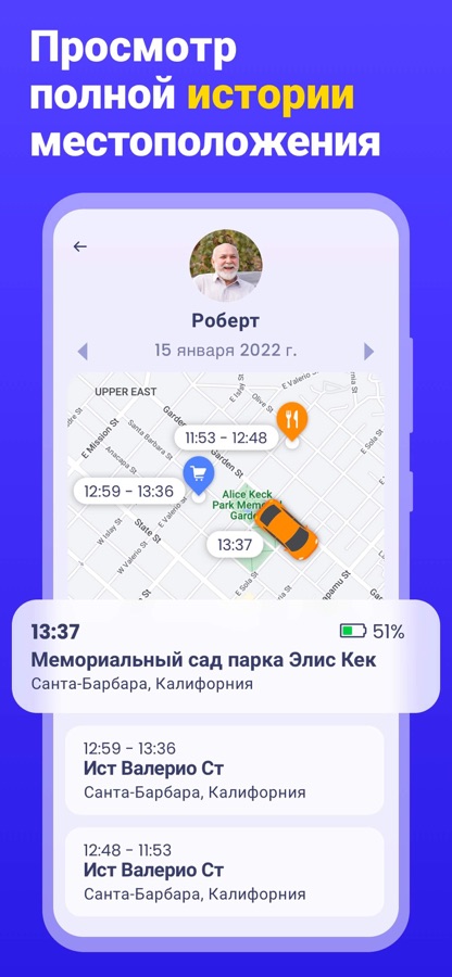 ◆ Неограниченное количество пользователей и история — вы можете добавить в свою сеть столько близких, сколько захотите, и просматривать их полную историю местоположения, ничего не платя за это.