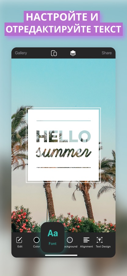 ° Текст — 100 шрифтов и текстовых эффектов.