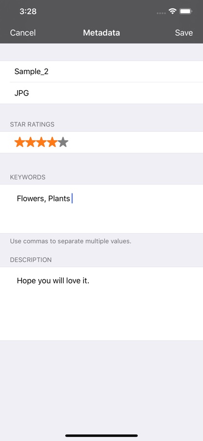Add star rating, description and keywords on photo.