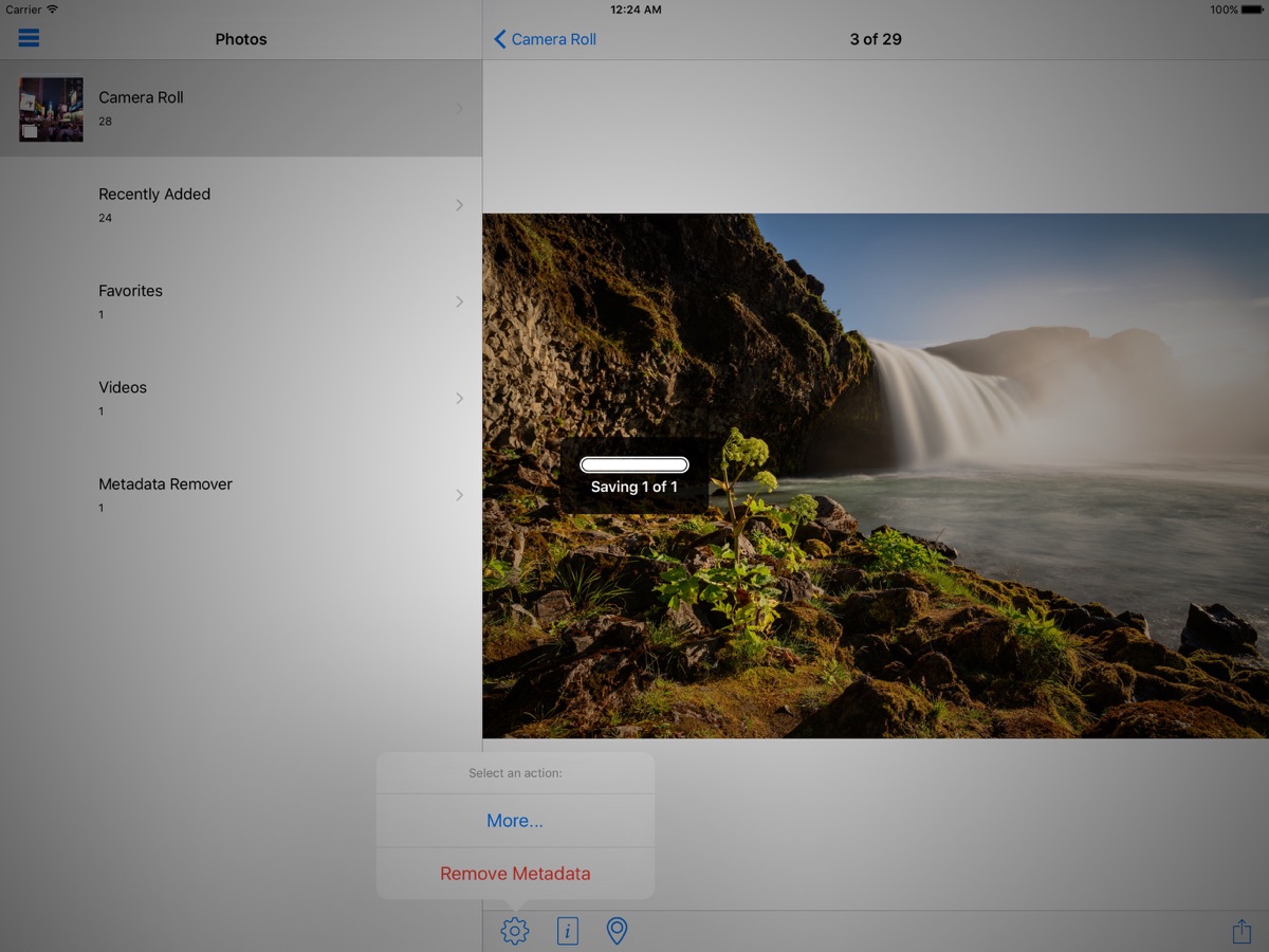 Note: Metadata is not removed from the original photo or video, a copy is made with the cleared metadata.