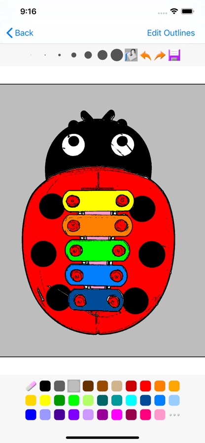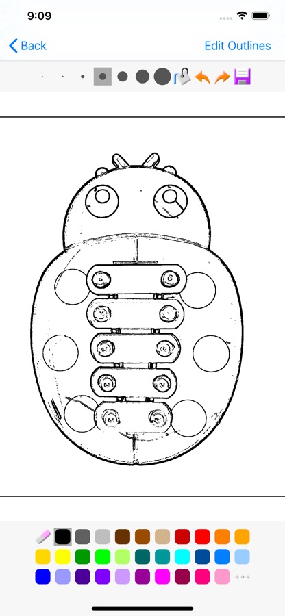 Using this app you can convert your photos to a coloring book. You can either take a photo with your device camera or pick an existing photo. The app converts your photo to a black and white drawing ready for you to add your colors using the painting tools. You can also open a new blank canvas and create your own drawing.