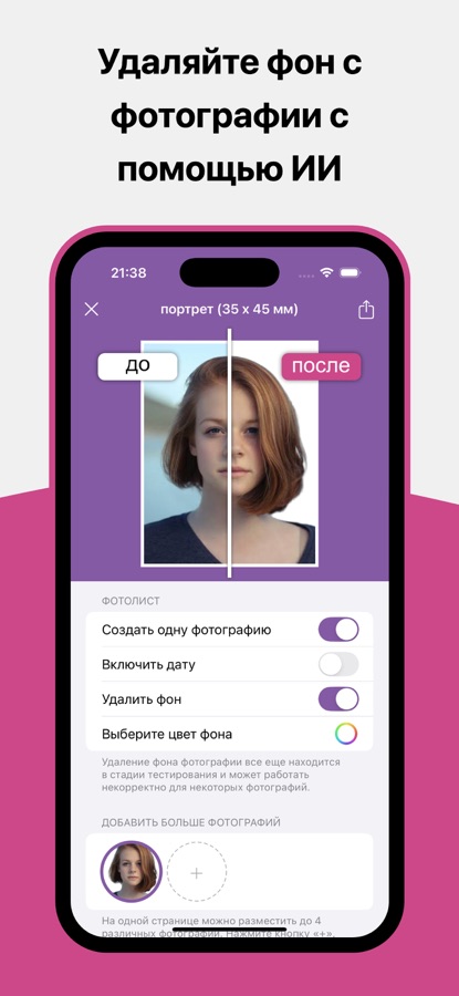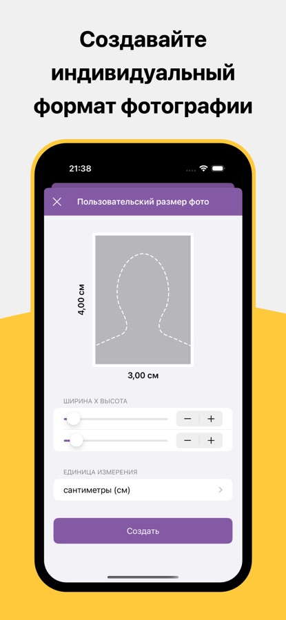 Сделайте снимок, и приложение создаст страницу с точными размерами фотографии для вашего водительского удостоверения, паспорта и стандартной фотографии (35 мм × 45 мм) или любого другого необходимого документа.