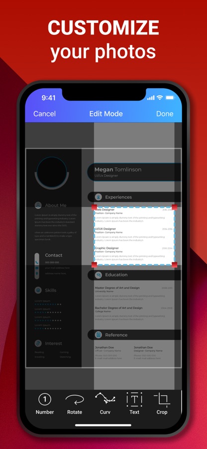 Используйте функцию смарт-обрезки во время создания снимка или выбора фотографии из камеры или фотогалереи. Вы можете корректировать края захваченного и выбранного документа.