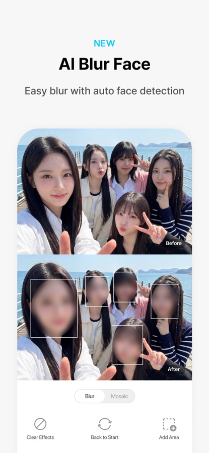 Use blur and mosaic tools to safely share photos without privacy concerns.