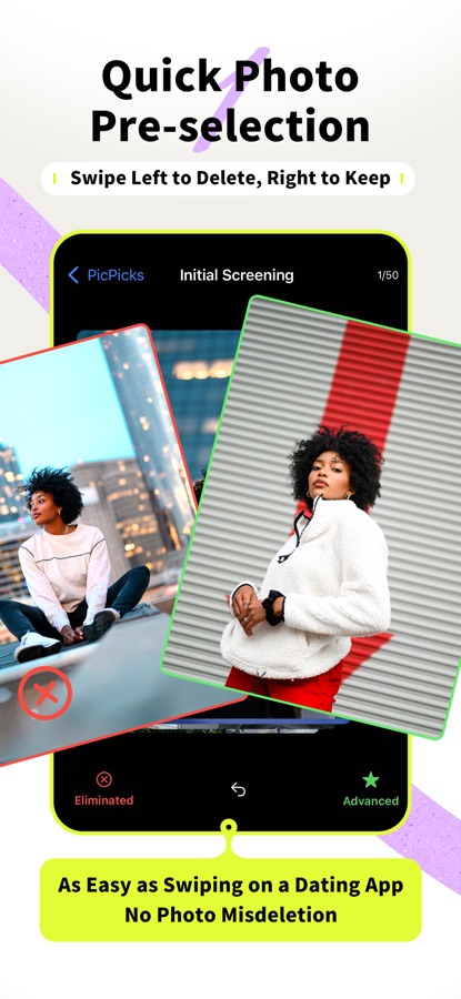 — Quick Selection: Quickly sort through photos by swiping left or right, and easily delete discarded photos.