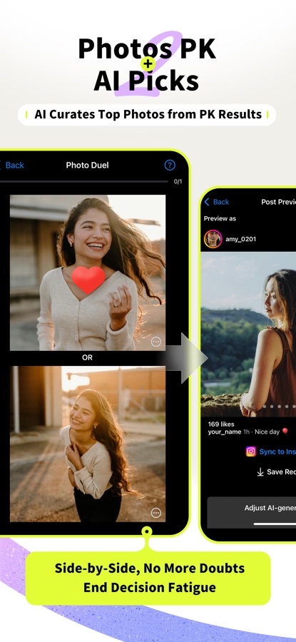 — Photo PK: The selected photos will be paired for a head-to-head comparison, eliminating decision fatigue.
