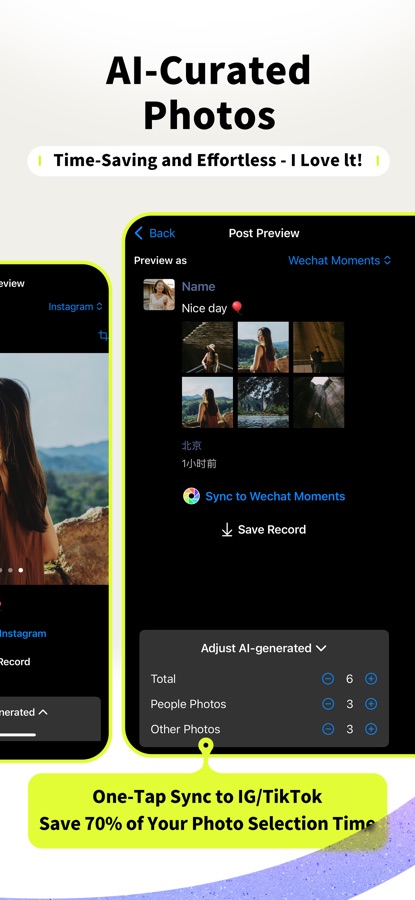 — Curated Selection: Generate 1-9 curated photos with the help of AI and Photo PK, and save them.