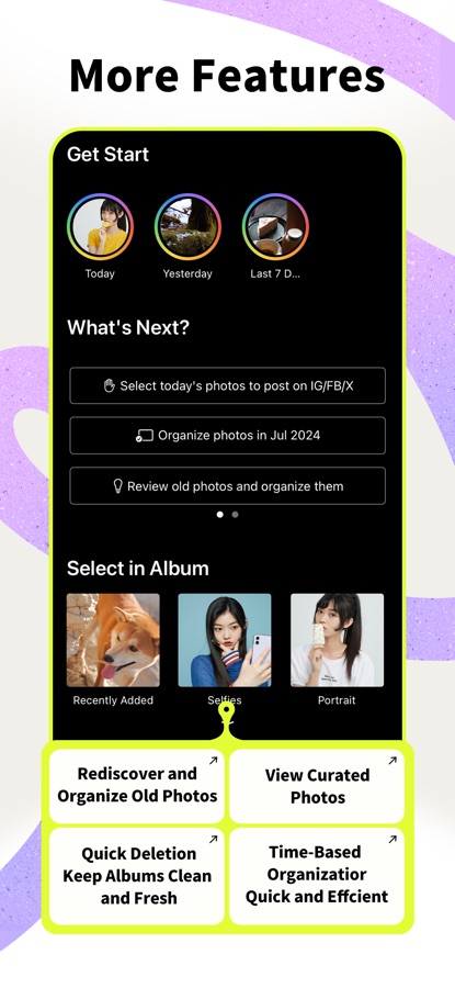 — Time-Based Sorting: Quickly sort photos from today, yesterday, the last 7 days, last month, or from your trips.
