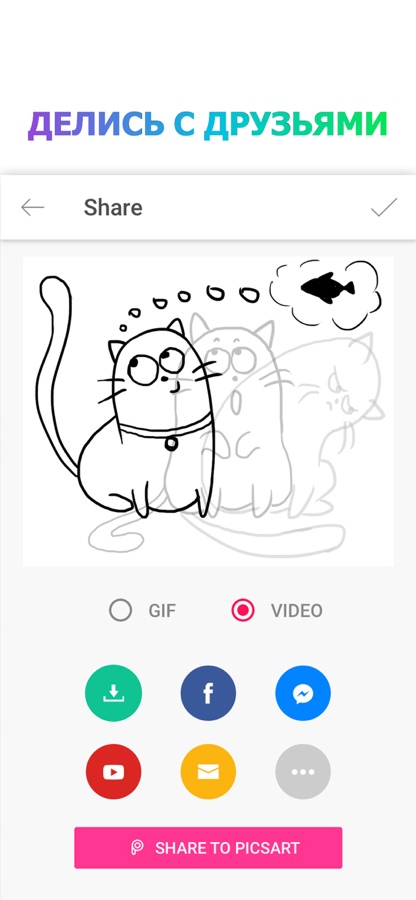 • Легко сохраняй как видео или GIF и делись в соцсетях (YouTube, Facebook и Instagram)