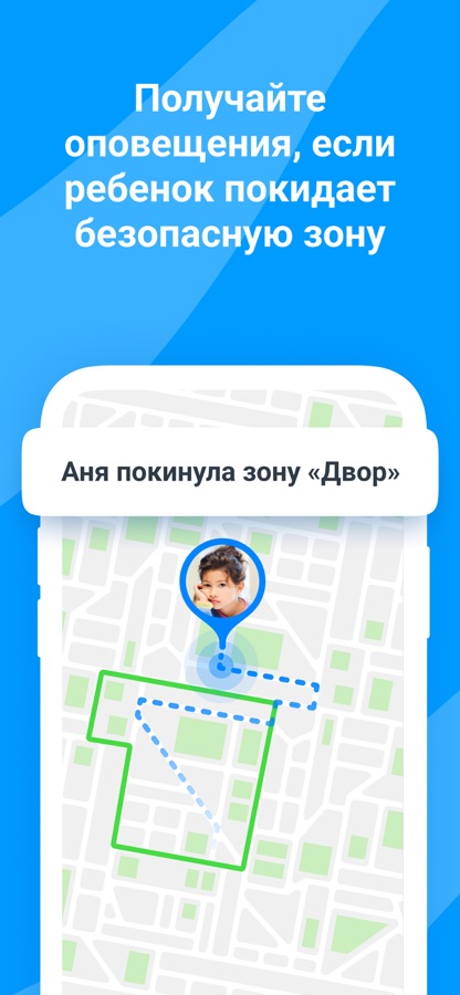 Добавляйте места (школа, дом, секция и т. д.) и получайте уведомления, когда ребёнок приходит или уходит из них.