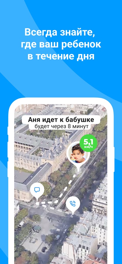 Просматривайте текущее местоположение и список посещенных ребёнком мест в течение дня.