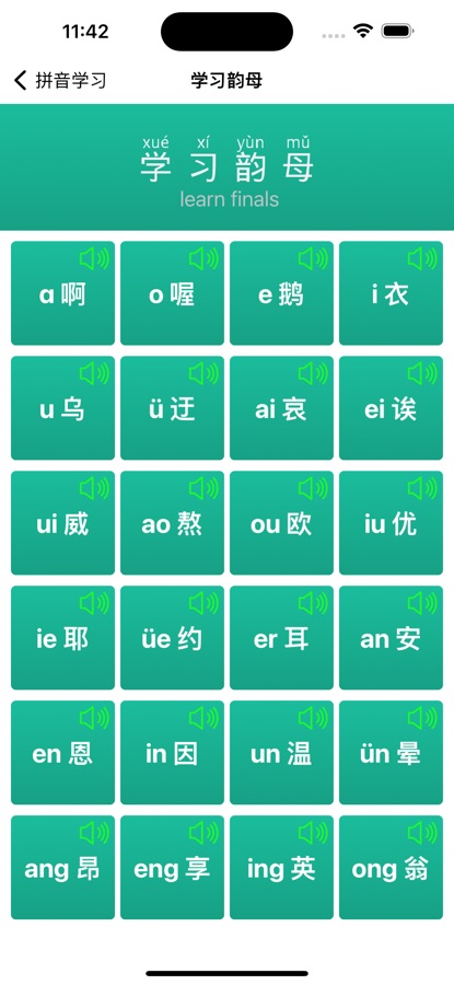«Pinyin learning-Pinyin learning» — это профессиональная платформа для изучения китайского пиньинь. Это приложение обеспечивает обучение с китайского на пиньинь, изучение сцен использования китайского языка, изучение китайских иероглифов, изучение инициалов, изучение финалей, изучение общих слогов, изучение отдельных финальных тонов, изучение сложных финальных тонов, изучение носовых тонов, изучение общего распознавания слоговых тонов, несколько основных модулей, может помочь вам постепенно освоить базовое произношение китайского языка и понимание китайских иероглифов.