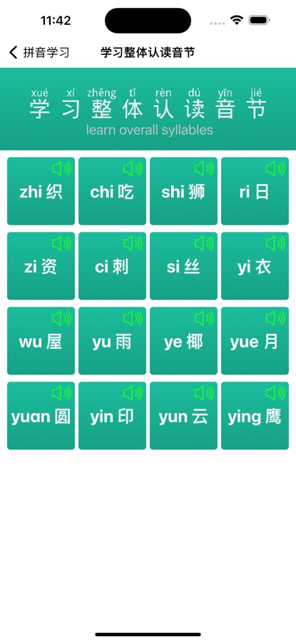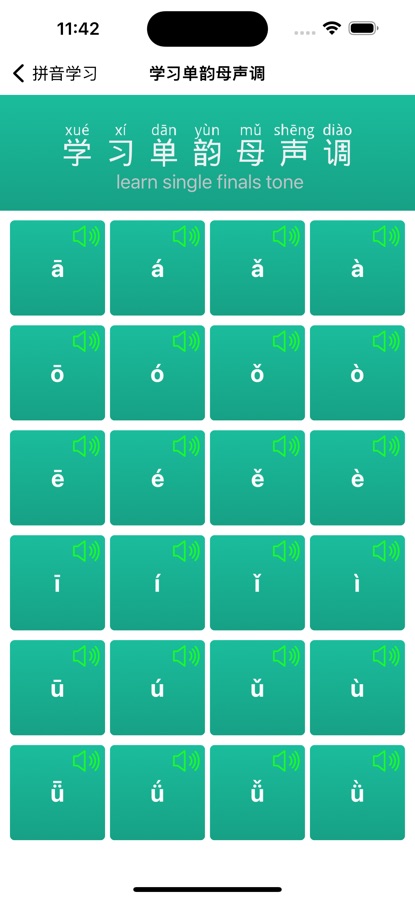 * Каждый китайский иероглиф или буква пиньинь поддерживает произношение щелчком, вы можете щелкнуть его, чтобы завершить практику произношения.