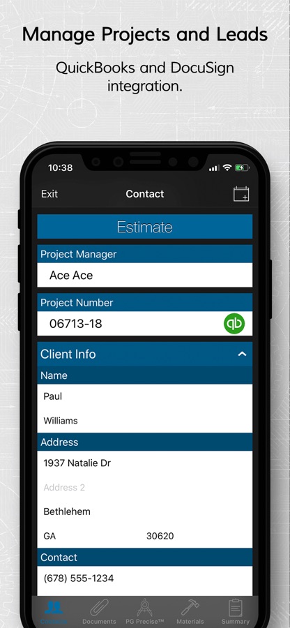 • Collect client info, insurance info (if necessary), project notes, etc.