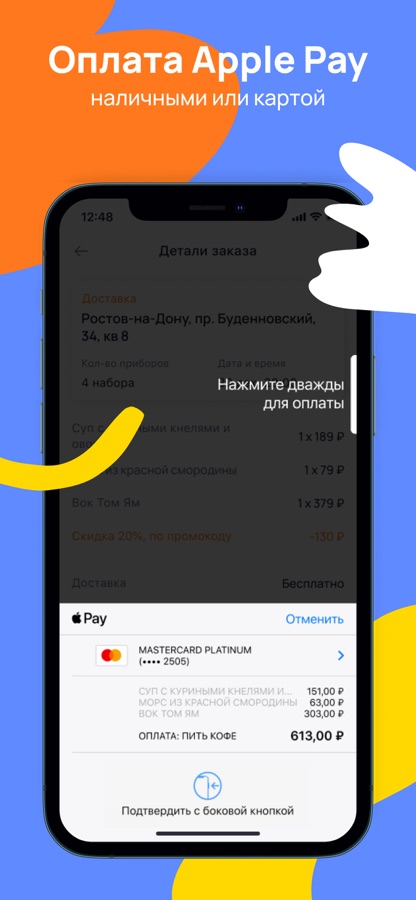 — Возможность копить и тратить бонусы на доставку, в кафе и навынос — оплачивай до 50% заказа баллами!