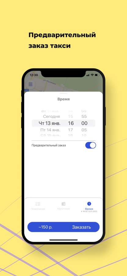 Выберите опцию “Предварительный заказ”. Поиск автомобиля начнется незадолго до заказа поездки, и автомобиль приедет к назначенному времени. Также вы будете заранее знать стоимость поездки.