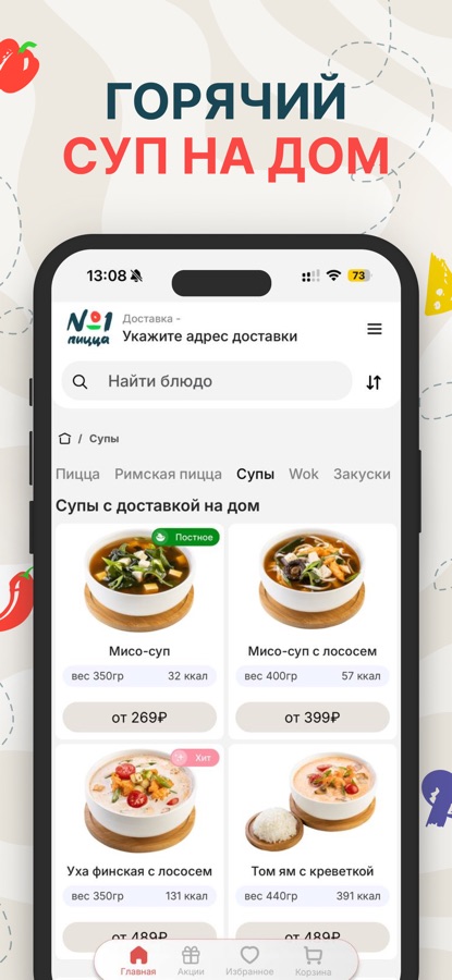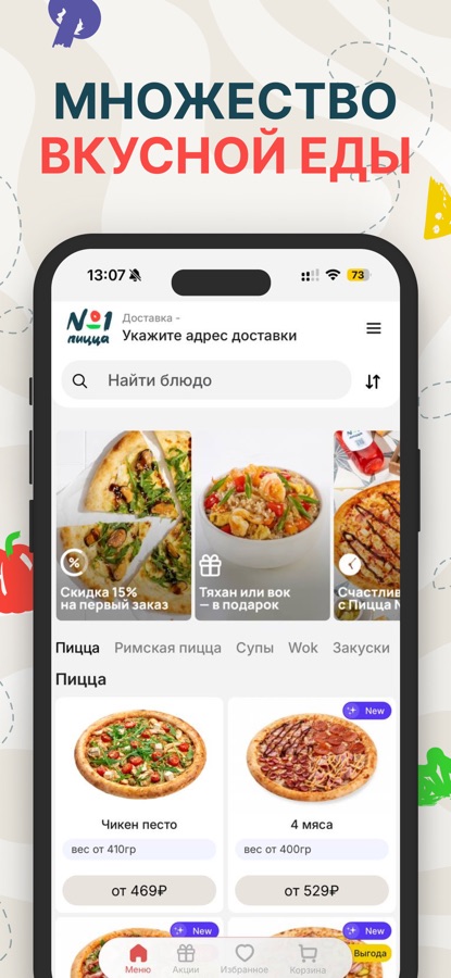 Большой выбор пиццы на доставку или самовынос в нашем приложении «Пиццы№1».