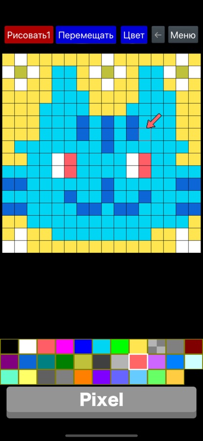 Перемещайте курсор пальцем и нажимайте «PIXEL» для рисования.