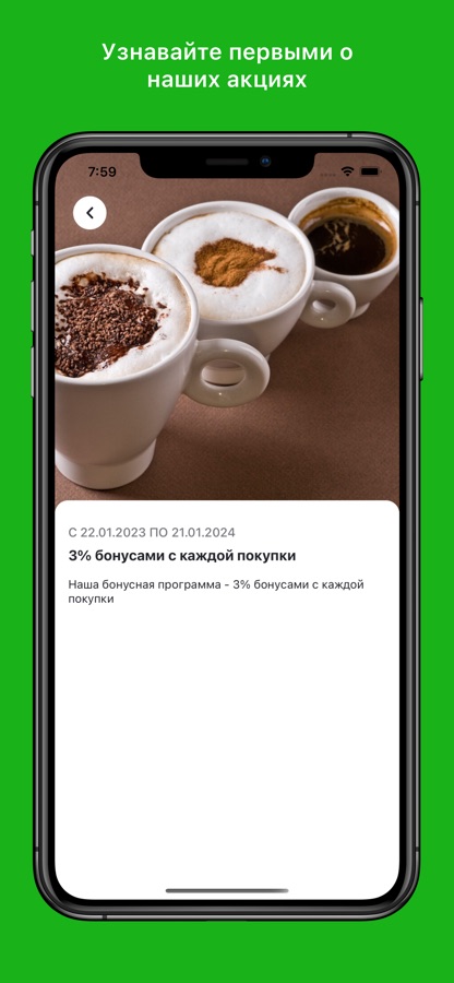 * Узнавать об акциях, скидках, розыгрышах