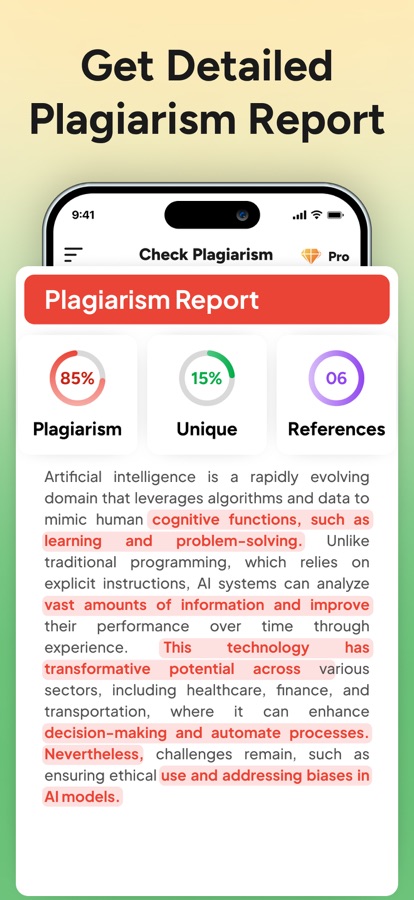 Приложение использует передовые алгоритмы искусственного интеллекта для обнаружения разделов, являющихся плагиатом, путем сравнения вашего контента с другими онлайн-источниками.