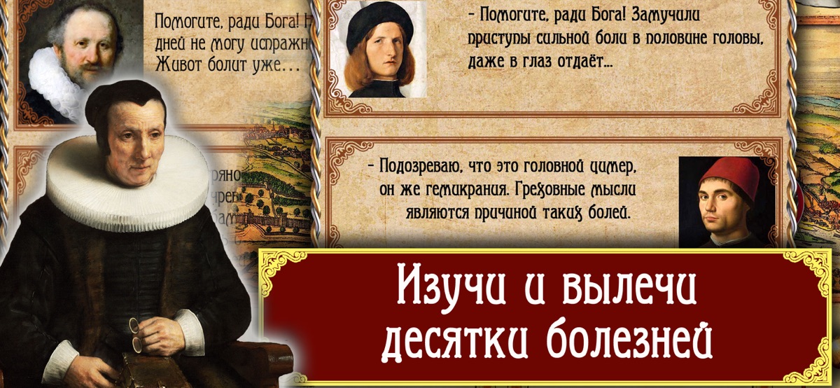 +++ Сыграй за любого из пяти персонажей: Цирюльник, Аптекарь, Ученый, Знахарка, Монах.