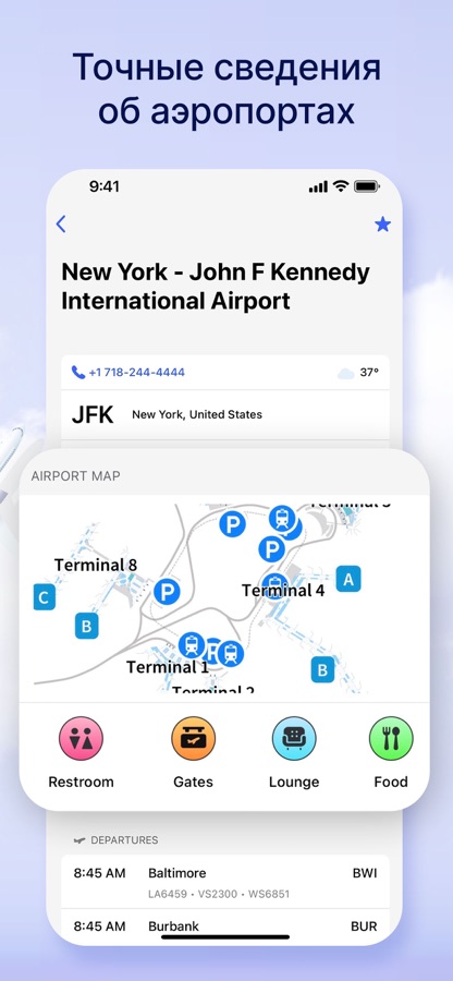* Добавляйте аэропорты и местоположения в «Мои места» для более быстрого доступа к данным