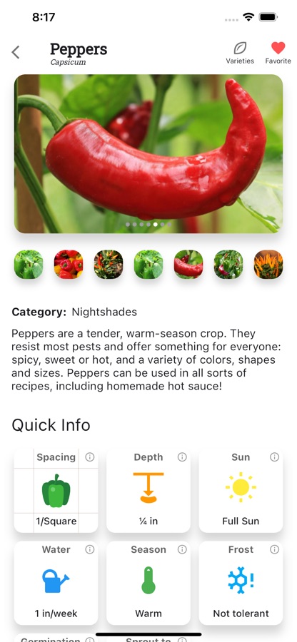 • Information on 100+ fruits and vegetables and thousands of varieties