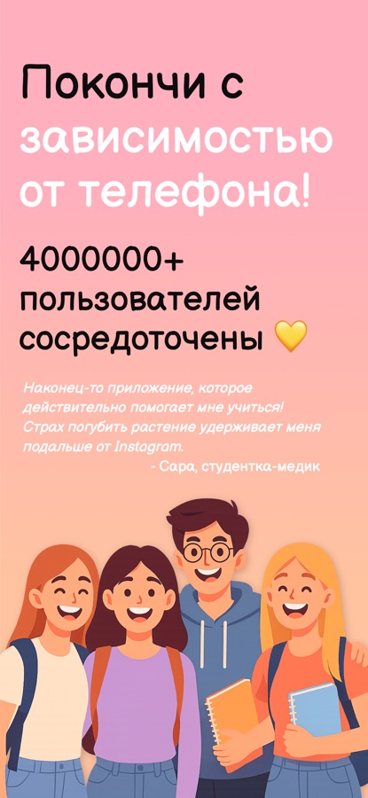 «Я пробовал все приложения для фокуса, но остался только с Plantie. Мой средний балл вырос на 0,5 в этом семестре!»