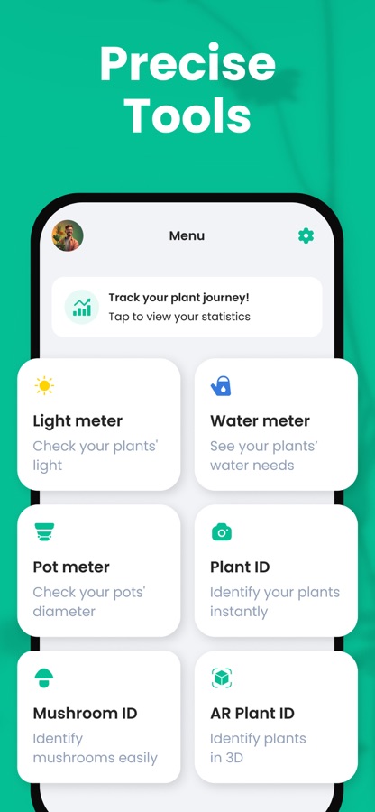 Вот еще один полезный инструмент, который рассчитывает правильный уровень освещения для вашей зелени! Просто нажмите кнопку «Световой экспонометр» и наведите камеру на растение. Наша технология на основе дополненной реальности автоматически сканирует ближайшее окружение, измеряет количество света и сообщает, нужно ли вам переместить растение в более светлое или более затененное место.