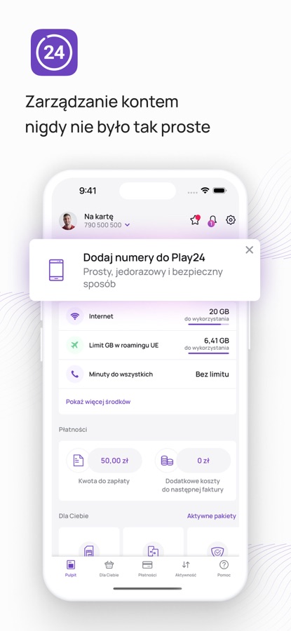 Download the Play24 app and discover that everything you need is in one place! Manage your services, pay bills, and access new offers – always at your fingertips, wherever you are.