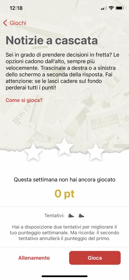 Allena i tuoi riflessi con l’attualità. Le notizie cadono dall’alto e dovrai rispondere correttamente prima che tocchino il fondo. Sarai abbastanza veloce?