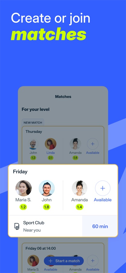 Effectively promote your matches and attract other padel players. Both matches that you create and those that you join will be marked as “Gold Matches”, which will allow other players to easily find them and join in the fun. And to make sure that you always find an available court, we will assign one to you immediately. Pretty cool, no?