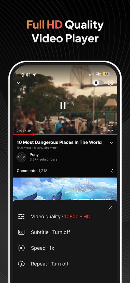 — Full features of video player: customize video playback speed, replay video, auto-play video.