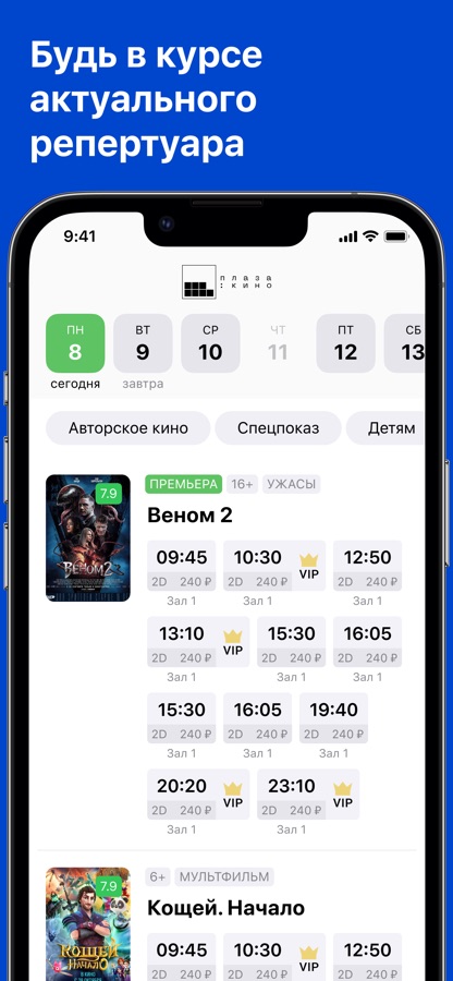 Мобильное приложение кинотеатра «Плаза Кино» поможет вам подобрать удобный сеанс, узнать о новинках кинопроката и приобрести билеты в кино.