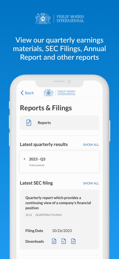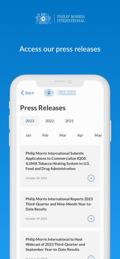 Philip Morris International Inc. (PMI) has launched a new Investor Relations Mobile Application which provides users with easier, more dynamic and comprehensive access to the company’s Investor Relations information, including: stock price quote, press releases, SEC filings, investor materials, as well as live and archive webcast playback of earnings calls and investor presentations.