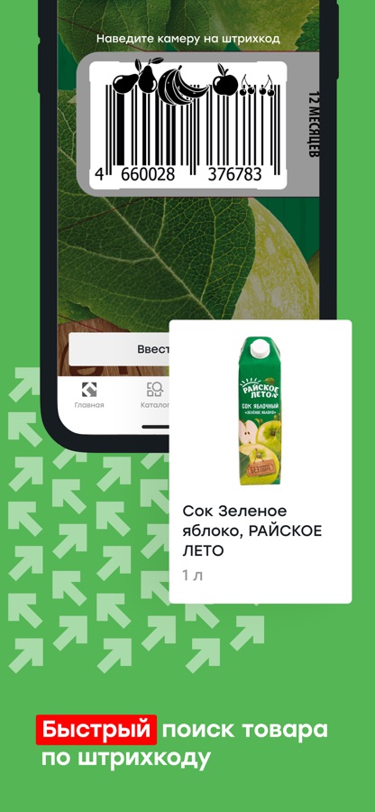 • Сканер штрих-кода — мгновенно проверяйте цены и наличие товара в магазине.