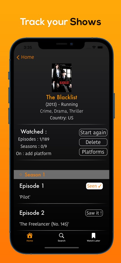 — See your progress for each TV show and each season.