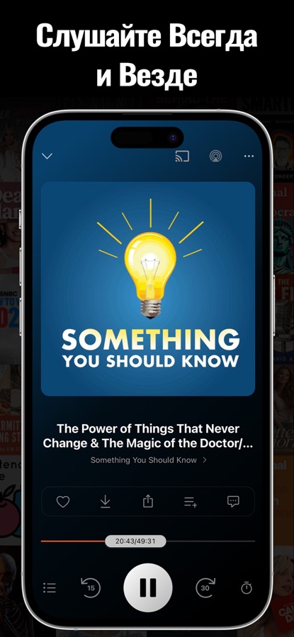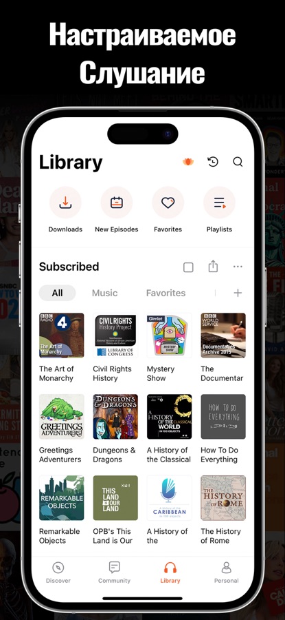 Благодаря широкому выбору различных подкастов вы можете воспроизводить в потоковом формате или скачивать ваши любимые подкасты в любом месте и в любое время.