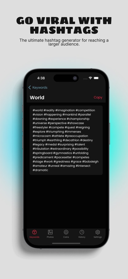 • Instant Hashtag Suggestions: Get tailored hashtags based on your photos or keywords.