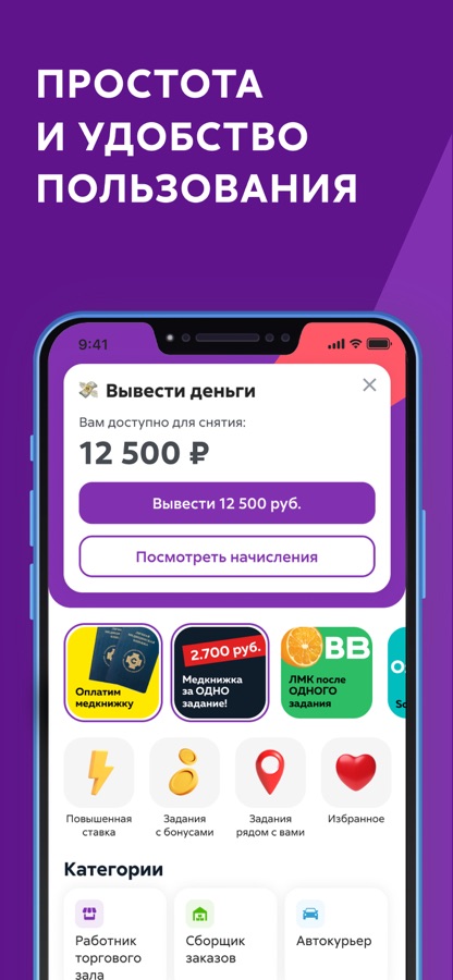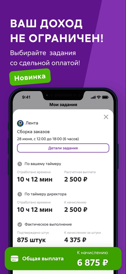В приложении есть задания от крупных российских компаний. Вы можете зарабатывать до 5000 ₽ в день и получать выплаты после выполнения задач. Ежедневно на нашей платформе публикуем более 3 000 заданий по всей России.
