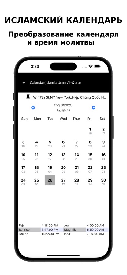 — Время мусульманских молитв по исламскому календарю: Ярмарка, Аср. Восход солнца, Магриб, Зухр, Иша