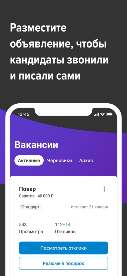 — Работать с вашими вакансиями: вы можете размещать, редактировать, переносить в архив и в случае необходимости их восстанавливать