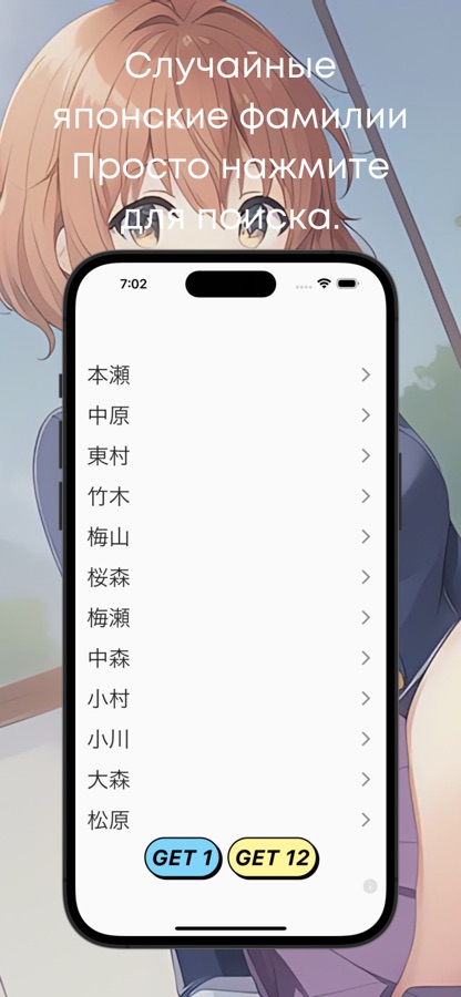 Это приложение отображает случайное японское имя семьи.