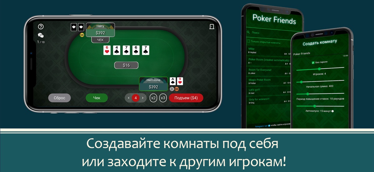 Играйте в покер с друзьями, ботами и соперниками со всего мира!